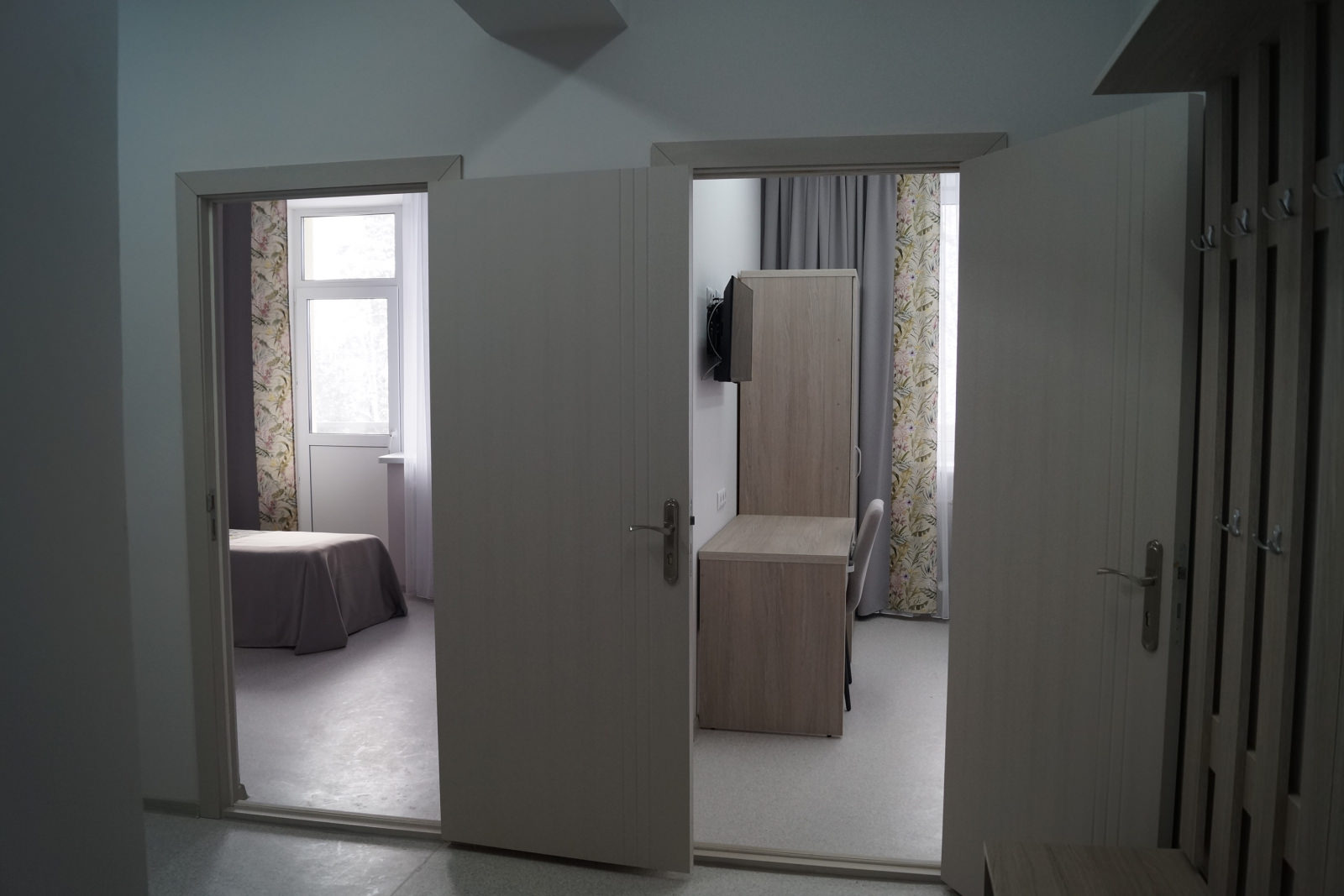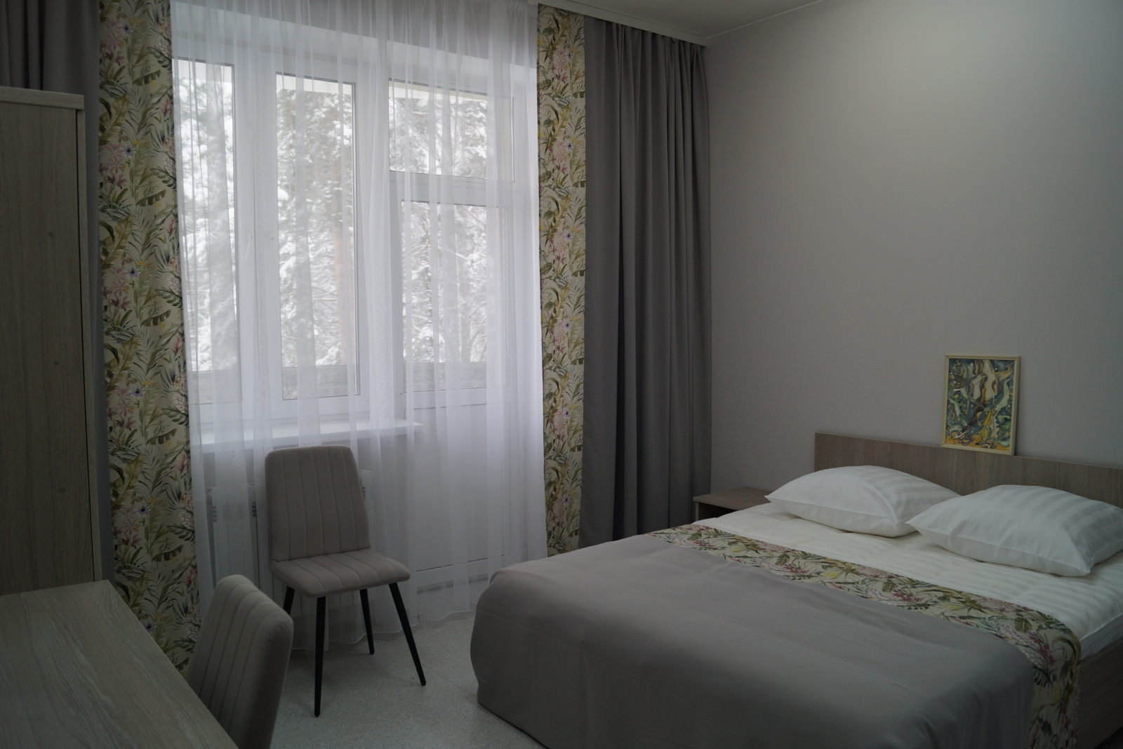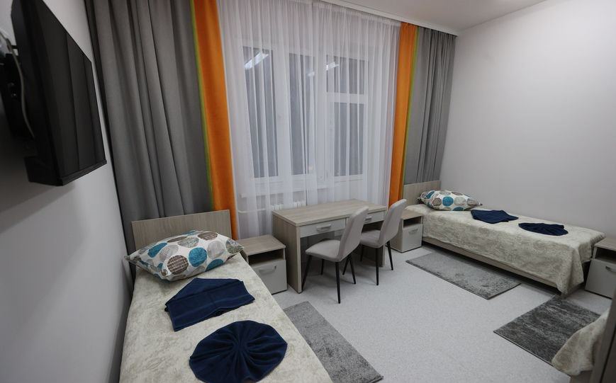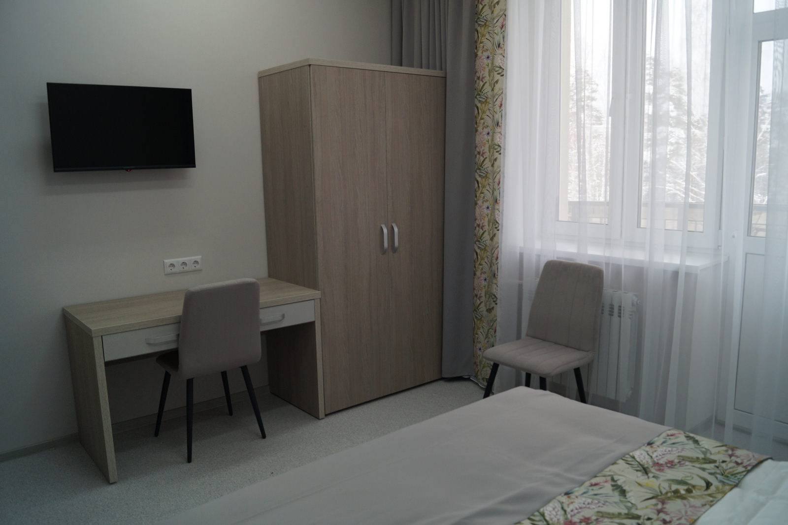 Площадь номера - 24 кв.м. 3 осн. места. 1 доп. место. Мебель: вешалка, диван раскладной, зеркало, кровати полутороспальные, прикроватные тумбочки, стол, стулья, шкаф. Оборудование: телевизор, холодильник, чайник. Санузел: с душем, туалетные принадлежности, фен. Сервис: смена полотенец, смена постельного белья, уборка номера.