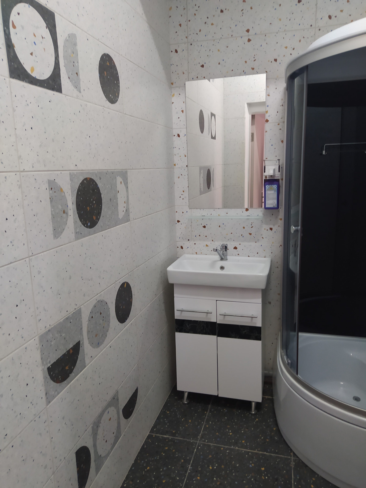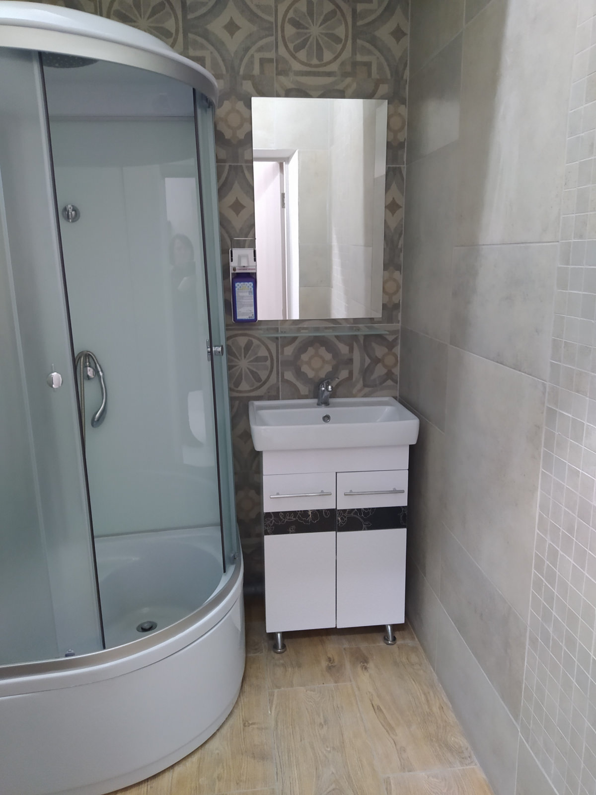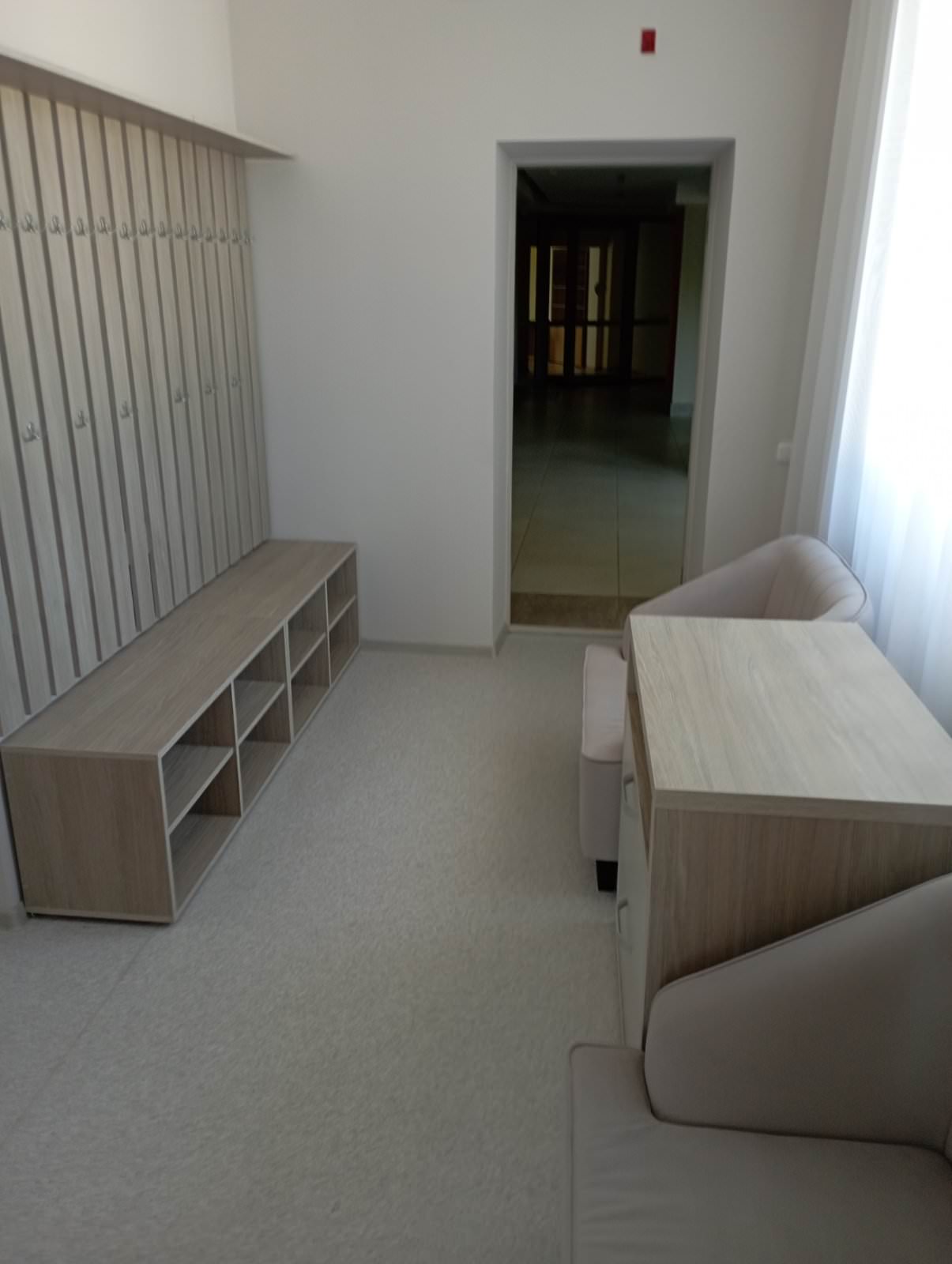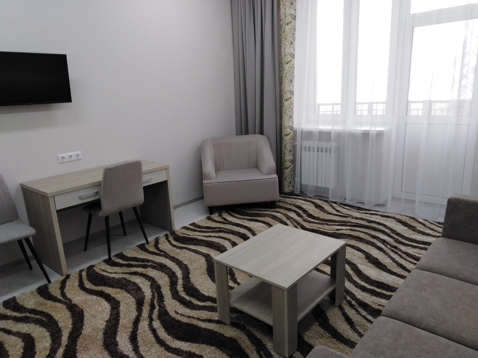 Площадь номера - 60 кв.м. 4 осн. места. 1 доп. место. Мебель: вешалка, диван, зеркало, кровати полутороспальные, кровать двуспальная, прикроватные тумбочки, стол, стулья, шкаф. Оборудование: телевизор, холодильник, чайник. Санузел: с душем, туалетные принадлежности, фен. Сервис: смена полотенец, смена постельного белья, уборка номера.